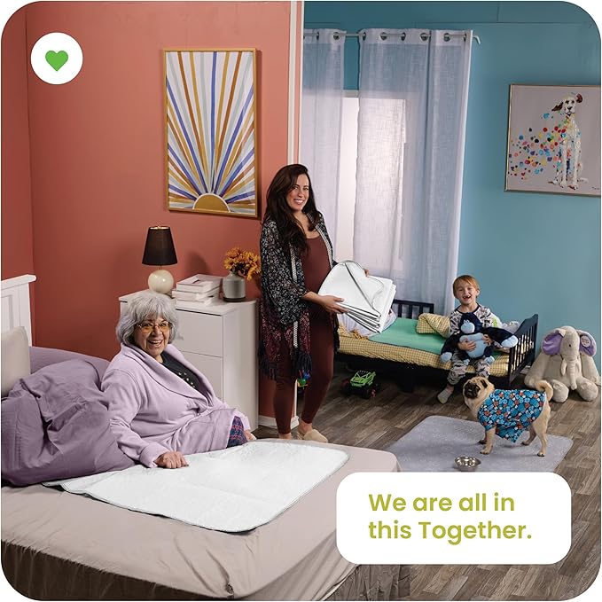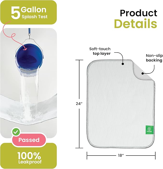 IMPROVIA® Washable Underpads, Heavy Absorbency Reusable Incontinence Pads for Kids, Adults, Elderly, and Pets - Waterproof Protection Floor White & White (4 Pack - 18x24)