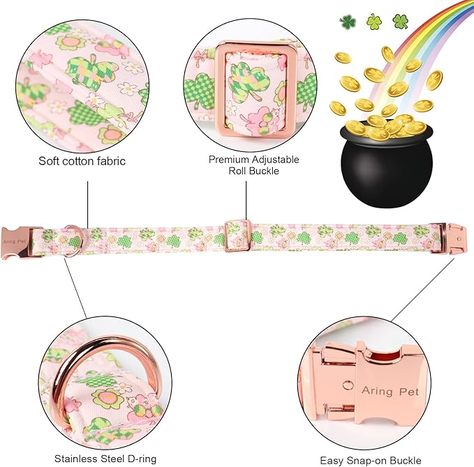 ARING PET St Patrick's Dog Collar with Bow, Cute Pink Shamrock Clovers Pets Detachable Bow Tie Collars for Puppy Small Medium Large Girl Boy Dogs-S