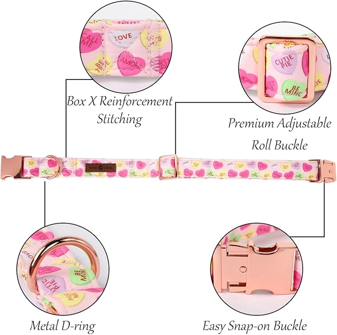 Lionet Paws Valentine's Pink Dog Collar, Cute Heart Dog Collar for Small Dogs, Adjustable Cotton Pet Puppy Collars for Small Dogs