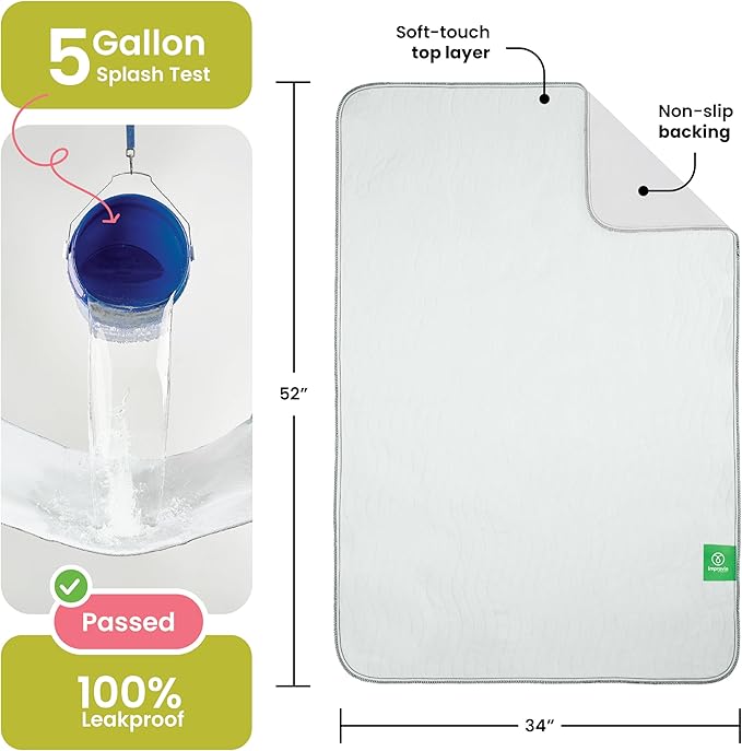 IMPROVIA® Washable Underpads, Heavy Absorbency Reusable Incontinence Pads for Kids, Adults, Elderly, and Pets - Waterproof Protection Floor White & White (2 Pack - 34x52)