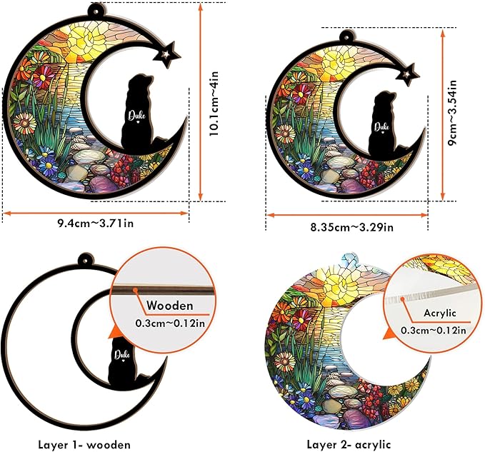 - COMPLETE PACKAGE: You will receive a 2-layer suncatcher made from high-quality wood and acrylic, printed on ONE SIDE, along with a protective paper box and three hanging strings—a red ribbon, a thin rope, and twine —for easy and versatile display. This package provides everything needed to beautifully showcase your suncatcher.