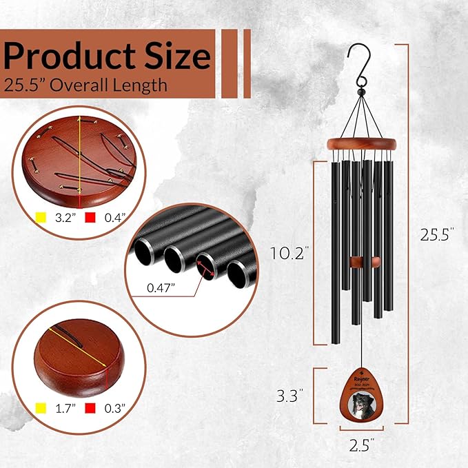 - 【Premium Memorial Wind Chime】Crafted from durable wood and thickened, corrosion-resistant aluminum tubes, this chime is built to last. Its meticulously tuned tubes produce deep, soothing tones that create a serene atmosphere. More than garden decor, it is a cherished memorial that offers a sense of eternal companionship.