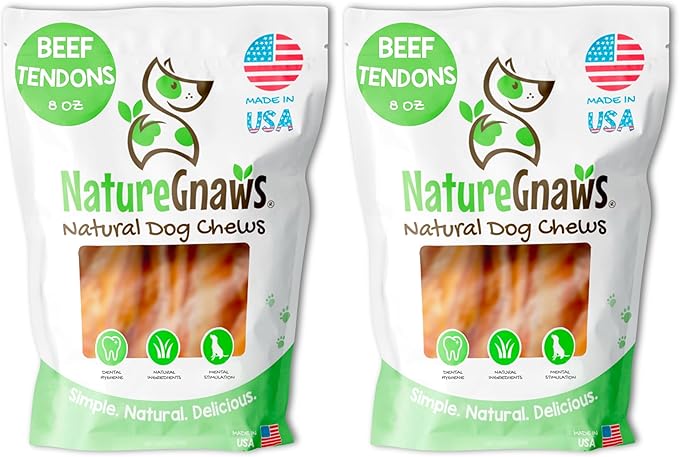 Nature Gnaws USA Beef Tendons for Dogs 1 Pound (8oz X2) - Mixed Thickness - Long Lasting for Aggressive Chewers - Premium Natural Beef Dog Chew Treats - Rawhide Free (Pack of 2)