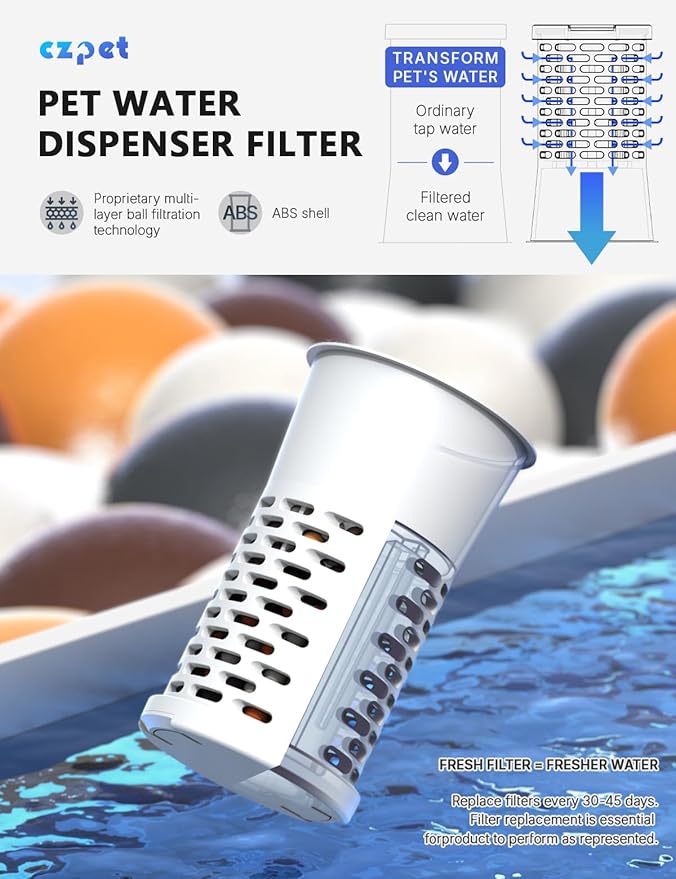CZPET Dog Water Bowl Dispenser with Filter, Automatic Dog and Cat Water Dispenser with Stainless Steel Bowl, Gravity Waterer, Large Capacity, and Quiet Drinking Area for Pets (8L+Filter,Black)