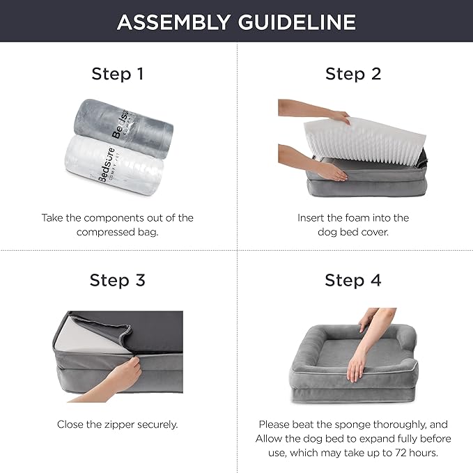 Bedsure Orthopedic Dog Beds Large Sized Dog - Washable Large Dog Cat Bed Waterproof, Comfort Dogs Couch Sofa with Washable Removable Cover, Pet Bed with Nonskid Bottom, Ivory, 35"