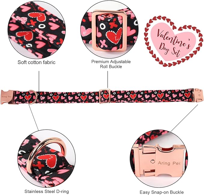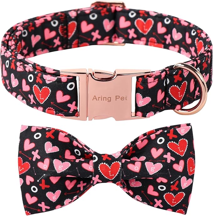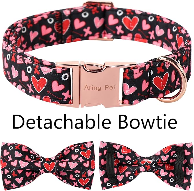 ARING PET Valentine's Day Bow Dog Collar, Black Red Heart Pet Collar with Bowtie for Small Medium Large Dogs-S