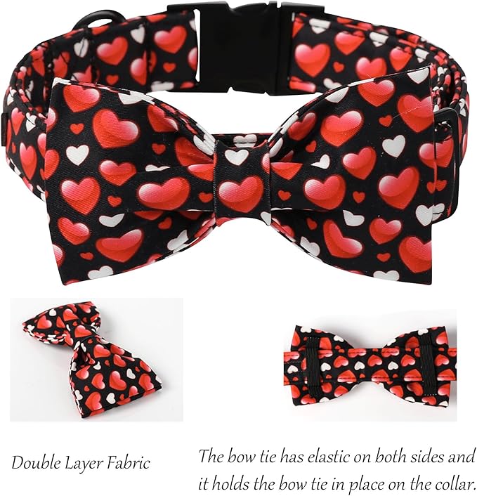 Lionet Paws Valentine's Dog Collar, Cute Heart Black Dog Collar for Large Dogs, Adjustable Cotton Love Pet Collars for Large Dogs
