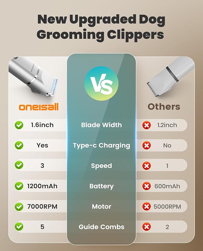 - 2.5Hr Runtime Dog Grooming Kit: Busy parents love this dog trimmer for grooming – 1200mAh battery delivers 2.5 hours cordless use (1.5hr USB-C charge). No mid-session shutdowns during dog paw trims or full-body shaves