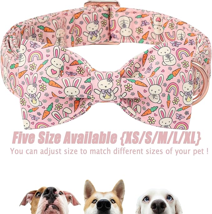 Easter Dog Collar with Bow Tie - Pink Easter Bunny Bowtie Dog Collar Adjustable Heavy Duty Spring Easter Dog Collars for Small Medium Large Dogs M