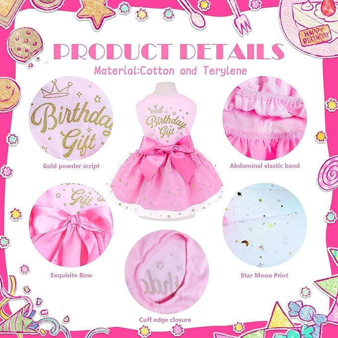 Birthday Dog Dress, Princess Dog Dress Tulle Puppy Skirt Doggie Birthday Outfit Pink Clothes for Small Dogs, Cat Pet Apparel (Small, Birthday)