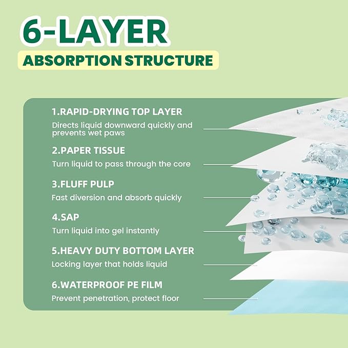 About This 【SUPER FAST ABSORPTION】 This puppy pads features a heavy-duty absorbent core design that can instantly absorb liquids within... Read more
