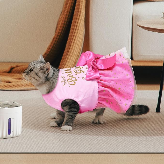 Birthday Dog Dress, Princess Dog Dress Tulle Puppy Skirt Doggie Birthday Outfit Pink Clothes for Small Dogs, Cat Pet Apparel (Medium, Birthday)