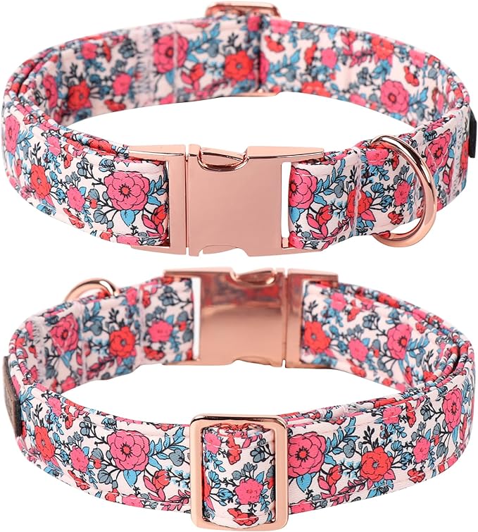 Lionet Paws Pink Flower Dog Collar, Cute Spring Dog Collar for Girl for Medium Dogs, Adjustable Cotton Flower Pet Collars for Small Medium Dogs
