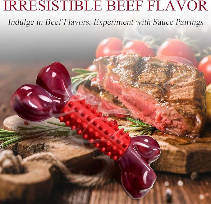 Apasiri Tough Dog Toys for Aggressive Chewers Large Breed, 2-Pack Dogs Chew Toys for Large Medium Dogs, Nylon and Rubber Dog-Bones for Teething Chew, Beef Flavor, for Doggo 20-80 lbs
