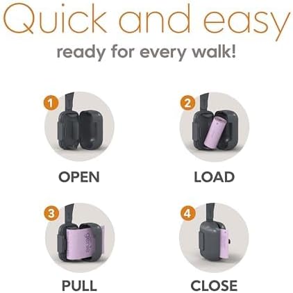 On-the-Go Dog Poop Bag Dispenser for Leash - Compact & Easy to Use Device for Pet Supplies with 2-Point Secure Attachment, Includes 1 Roll (15 count) of Scented Poop Bags, (Lavender Scent)