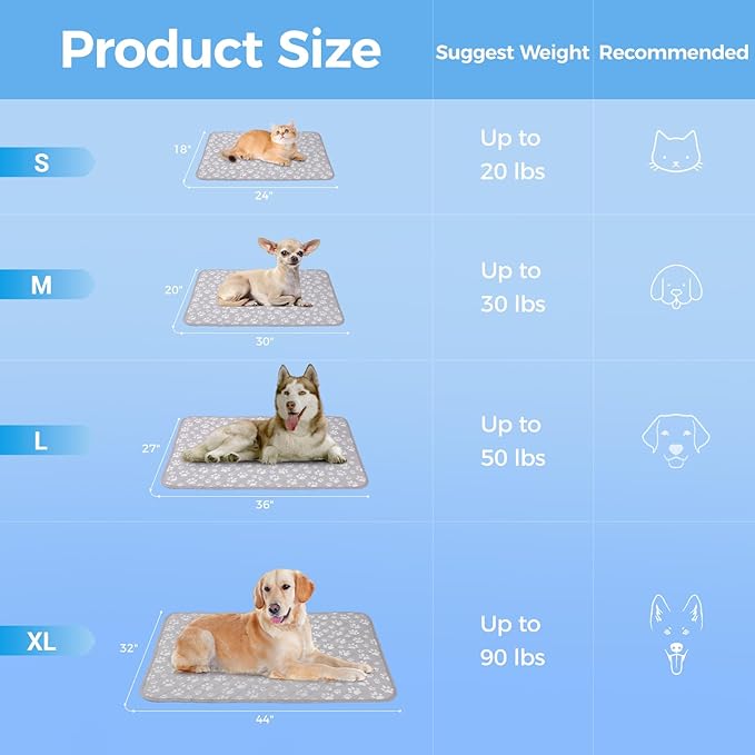 Rywell Cooling Mat for Dogs New Grey Edition, 36''x 27''Endothermic Color Changing Arc-Chill Cooling Fiber,Washable Non-Toxic Summer Pet Outdoor Bed Mat, Non-Slip&Foldable