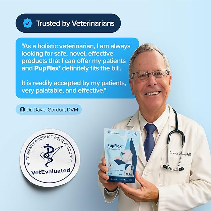 - TASTY, ALL-NATURAL SUPPORT DOGS LOVE – Made with Antarctic QRILL for Omega-3s and antioxidants, PupFlex+ promotes joint health and vitality. Non-GMO, veterinarian-formulated, certified by VetEvaluated, a premium choice in dog health supplements.