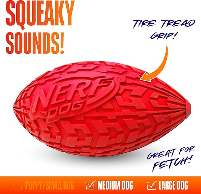 About This The information below is per-pack only Squeaky Dog Football Toy: Each Nerf Dog Red Tire Football outdoor dog... Read more