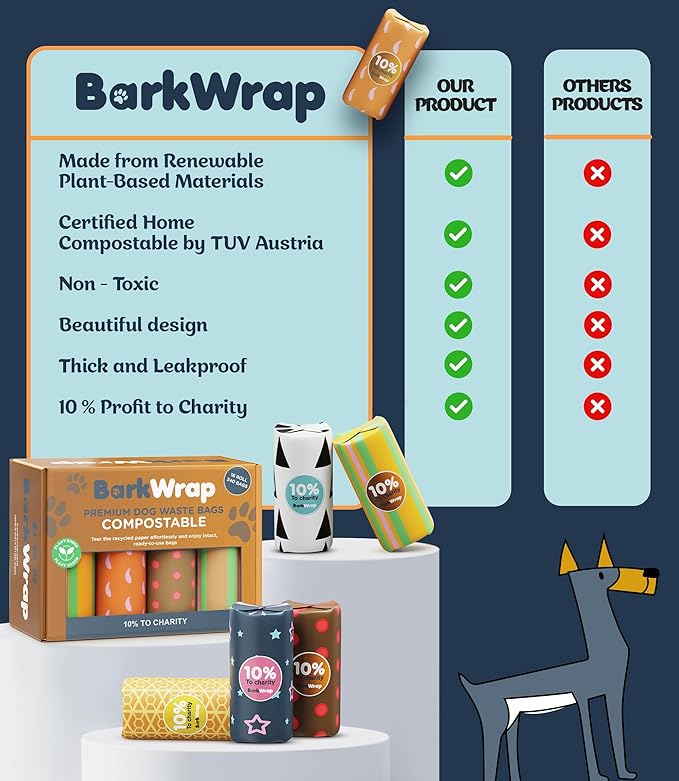 - â»ïž MADE FROM 100% RECYCLED MATERIALS - ZERO-WASTE PACKAGING! Not only are our bags fully compostable, but our packaging and roll cores are made from 100% recycled cardboard, reinforcing our commitment to sustainability. Reduce plastic waste while keeping your pup's routine eco-friendly!