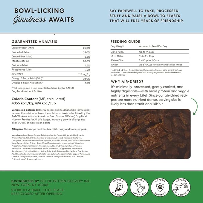 - Packed with Superfoods for Enhanced Well-Being - Our air dried dog food includes a blend of fruits and vegetables like beet powder and spinach, supporting good vision and promoting a shiny coat for your furry friend
