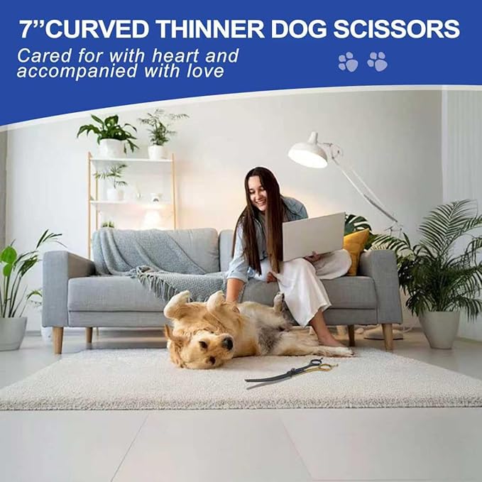 7" Curved Thinner Dog Scissor, Curved Chunker Scissors, 21 Teeth, 40% Thinning Rate, Professional Pet Shear for Groomer, Ergonomic Dog Grooming Scissor, Dogs Shear for Grooming