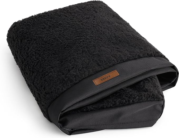LE SURE Washable Dog Bed Cover Replacement - Large Size Plush Fleece Cover for Orthopedic Egg Crate Foam Pet Mat 36x27x3 Inches, Black