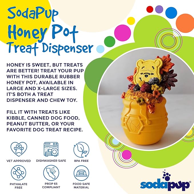 SodaPup Honey Pot – Durable Dog Treat Dispenser & Enrichment Toy Made in USA from Non-Toxic, Pet Safe, Food Safe Natural Rubber Material for Mental Stimulation, Problem Chewing, Calming Nerves, & More