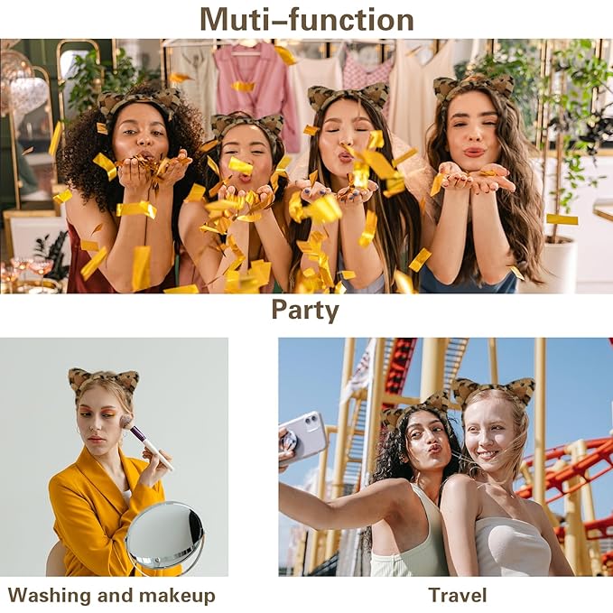 Beviliu Leopard Cheetah Ears Headband, Leopard Cat Hairband for Women, Leopard print Costume Bear Bunny Dog Headband for Birthday Party Halloween Christmas Washing Makeup Cosplay, 2Pack