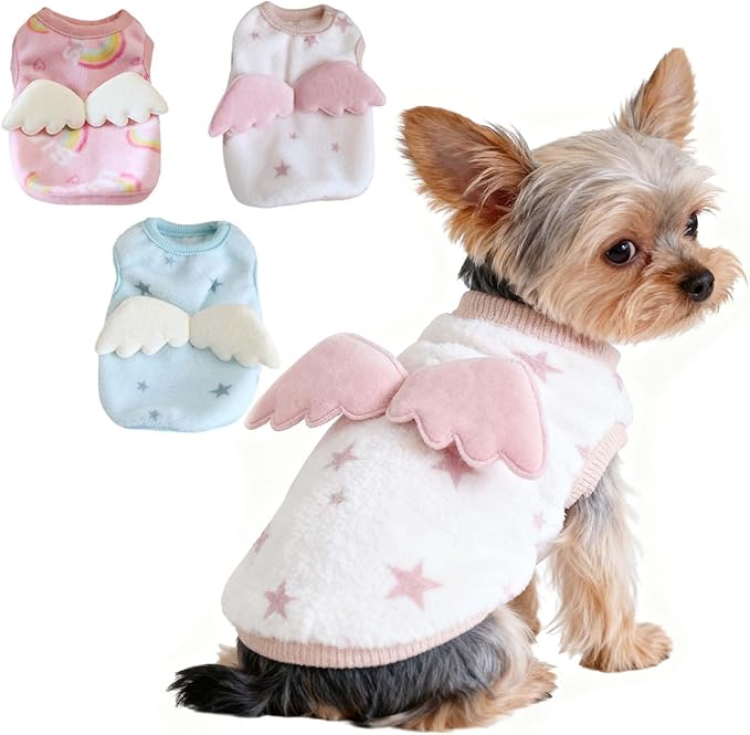 FLAdorepet 3 Packs Teacup Dog Cat XXS Clothes for Chihuahua Yorkie,Winter Warm Fleece Puppy Pet Clothes Sweater Shirt Vest for Mini Newborn Extra Small Dogs (Angel, XXXS(Pet Under 1LBS))