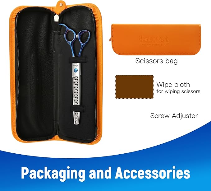 Fenice Peak Grooming Scissors for Dogs 7 inch Chunker Pet Grooming Scissors Ergonomically Designed Blue Handles Ideal Dog Shears for Precise Trimming Easy Use.