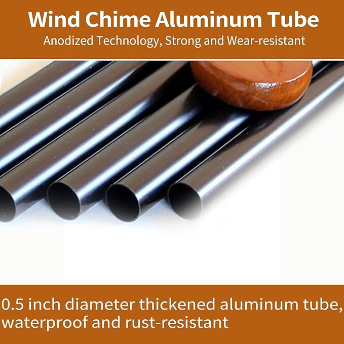 - 【High Quality】The wind chimes for outside is made of high quality pine wood, durable, wear-resistant, not easy to break, can withstand the harsh natural environment. 6 aluminum tubes are anodized and thickened to prevent corrosion. Each piece is of the highest quality