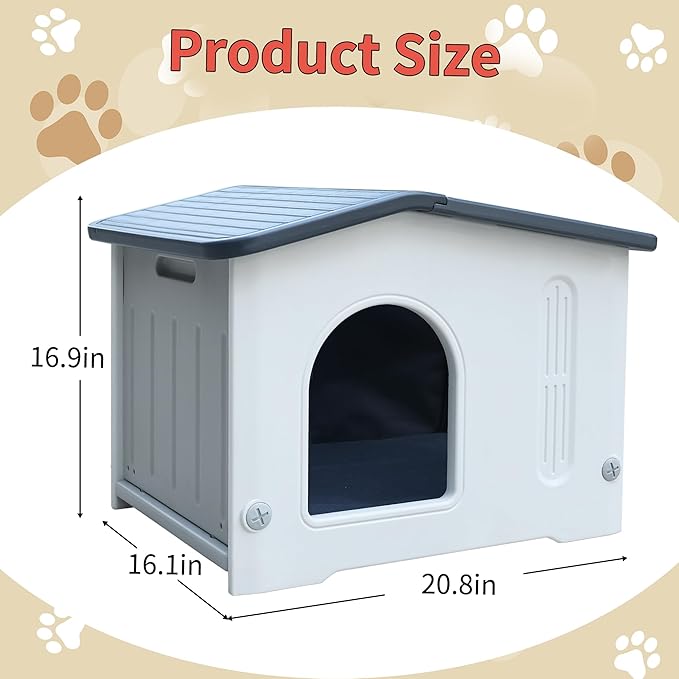 - Spacious Outdoor Cat House: CSQOO cat house measures 16.1"D x 20.8"W x 16.9"H, spacious living space is suitable for kittens, puppies and other small animals, and our cat house is equipped with a cat bed cushion that fits seamlessly inside.