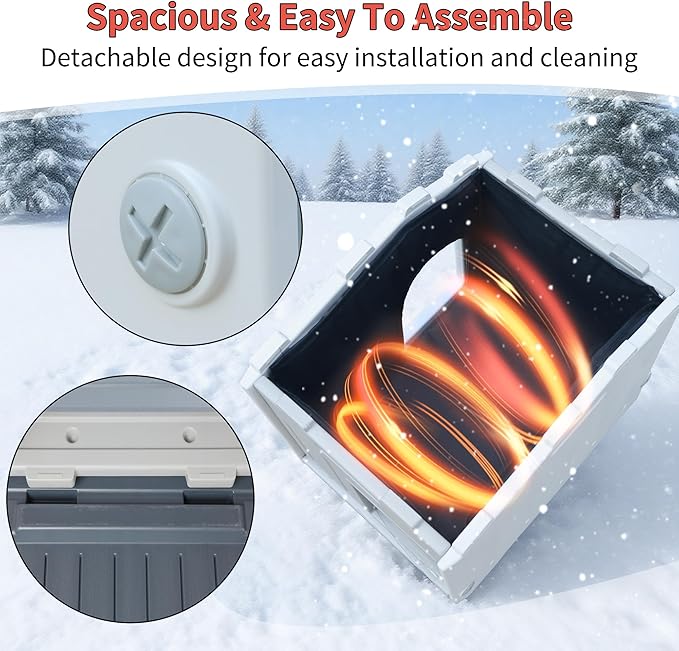 - 100% Insulated Cat Houses: This outdoor cat house features a fully insulated liner on all six sides, ensuring your cats stay warm and comfortable inside even during the coldest winter weather.