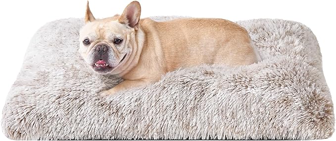 EHEYCIGA Fluffy Dog Crate Bed for Medium Dogs, Plush Faux Fur Crate Pad, Calming Anti Anxiety Medium Dog Bed, Washable Soft Warm Mat with Non-Slip Bottom, Brown