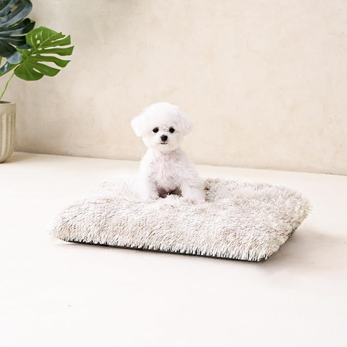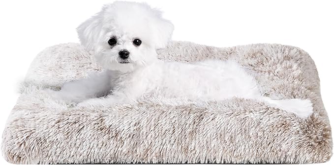 EHEYCIGA Fluffy Dog Crate Bed for Small Dogs, Plush Faux Fur Crate Pad, Calming Anti Anxiety Small Dog Bed, Washable Soft Warm Mat with Non-Slip Bottom, Brown