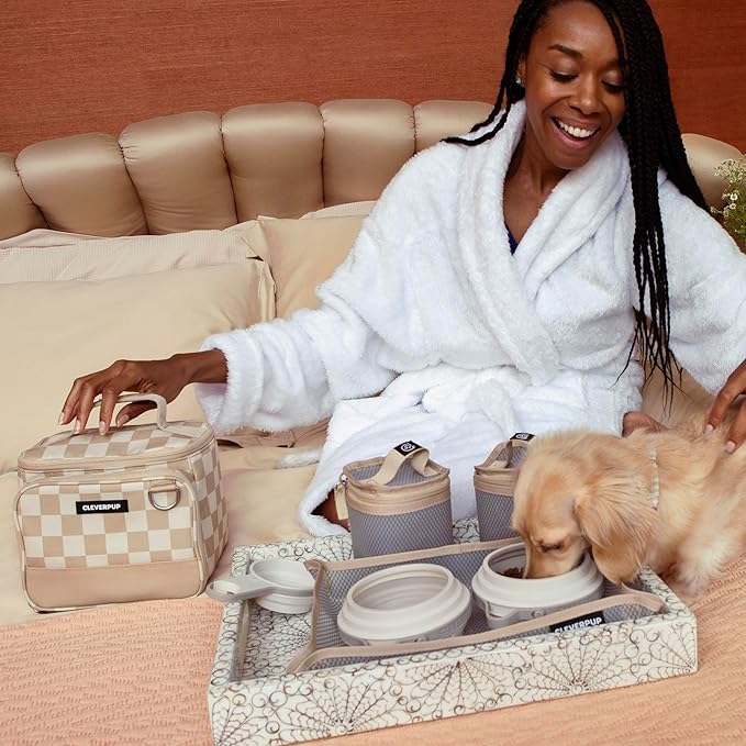 - ALL-IN-ONE TRAVEL KIT - The perfect solution for stress-free meals on the go with your pup. Includes everything you need: food-safe storage containers, collapsible bowls, feeding tray, treat pocket, and insulated bag for ultimate convenience.
