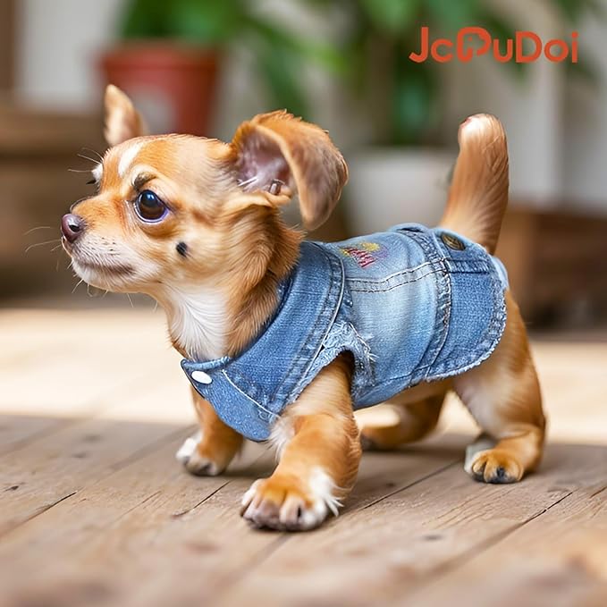 Birthday Gift Boy Dog Jeans Jacket Denim Pet Coat for Puppy Small Dogs Classic Overalls Male Cat Costumes Washed Vest Clothes Outfit T-Shirts (X-Small)