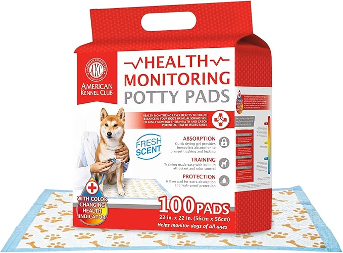 American Kennel Club Advanced Puppy Pads with Color-Changing Health+ Indicator and Ultra Absorbent Quick Dry Gel – 22''x22'' Leakproof Training Pads for Dogs – Fresh Scented – 100 Count