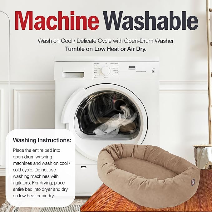 Majestic Pet 24 Inch Suede Calming Dog Bed Washable 24x19x7 (Inch) – Cozy Soft Round Donut Dog Bed with Spine Support for Dogs to Rest Their Head - Pet Bed Small – Stone (2025)