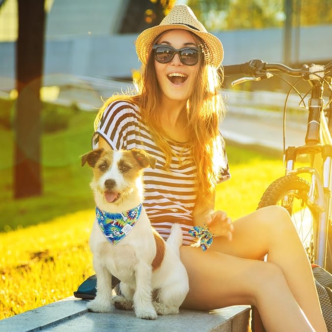 E-Clover Dog Bandanas Boy & Matching Scrunchie Set Girl Cute Rainbow Dog Scarf Bibs Pet Bandana with Bow Tie for Medium Large Dogs Owner Mom Pride