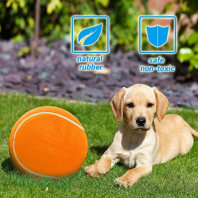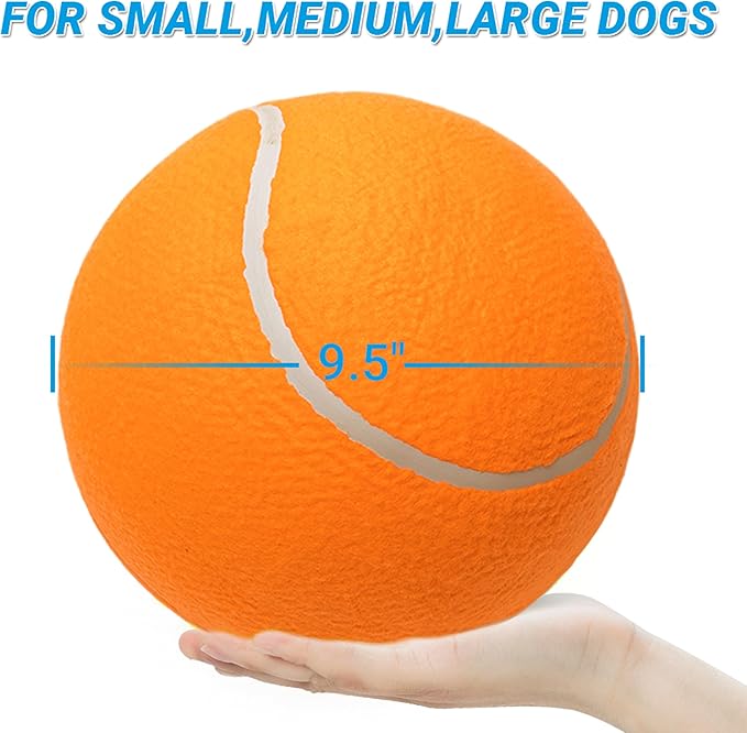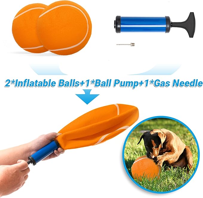 9.5" Large Dog Tennis Balls, 2 Pack Interactive Pet Toys for Playing Training Outdoor Indoor, Oversize Rubber Inflatable Dog Ball with Pump & Needle for Small Medium Large Dogs