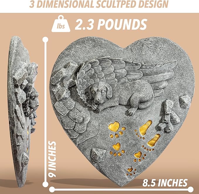 - 🎁 Thoughtful and Healing Gift: Our pet memorial stones and keychain are great dog passing away gifts to send it to a grieving friend or relative to express your sympathy. Can be displayed as a pet headstone at a pet's final resting place or as a dog angel memorial statue in a place of honor in their home.