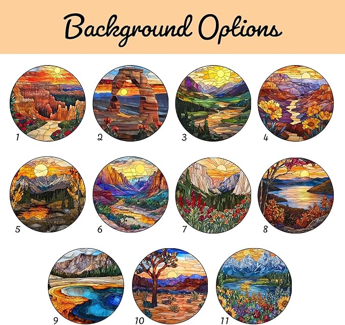 - EASY CUSTOMIZATION: Personalize your suncatcher effortlessly by providing your pet’s name and breed (up to 3 pets). Choose from 11 National Park background options to create a meaningful keepsake that honors your special bond. We will craft your custom piece and ship it to you promptly.
