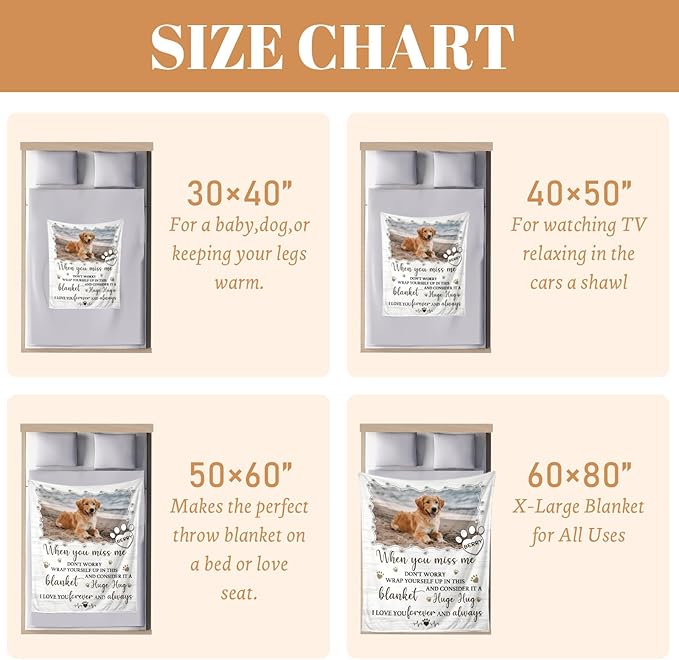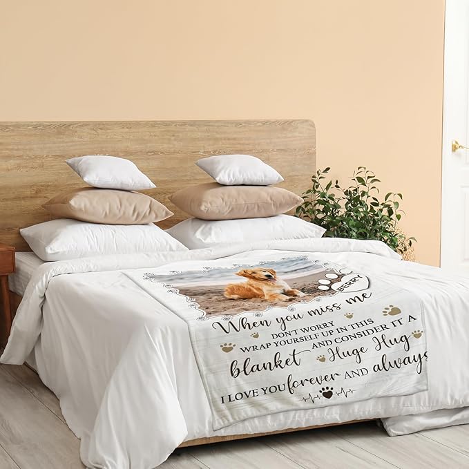 - 【Pet Memorial Gifts for Dogs Cats】: Customized blankets with dogs photos name to express sympathy for memorial comfort the grieving for loss of a loved pet. Custom pet blanket printed with " When you miss me don't worry..." is great pet memorial gifts, dog memorial gifts for loss of dog, pet loss gifts, rainbow bridge dog memorial gifts, loss of dog cat sympathy gift, pet remembrance gift dog, dog bereavement gift, gifts for cat lovers, bereavement gifts dogs, dog memory gifts, in memory of dog gifts, dead dog memorial gifts, custom pet gifts.