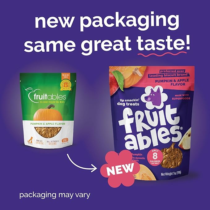 Fruitables Baked Dog Treats, Healthy Pumpkin Treat for Dogs, Low Calorie & Delicious, Free of Wheat, Corn and Soy, Made in The USA, Pumpkin and Apple Flavor, 20oz