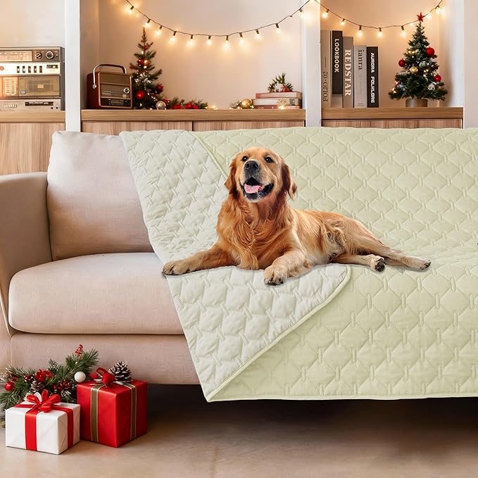 gogobunny 100% Double-Sided Waterproof Dog Bed Cover Pet Blanket Sofa Couch Furniture Protector for Puppy Large Dog Cat, Reversible (52x82 Inch (Pack of 1), Dark Cream/Light Cream)