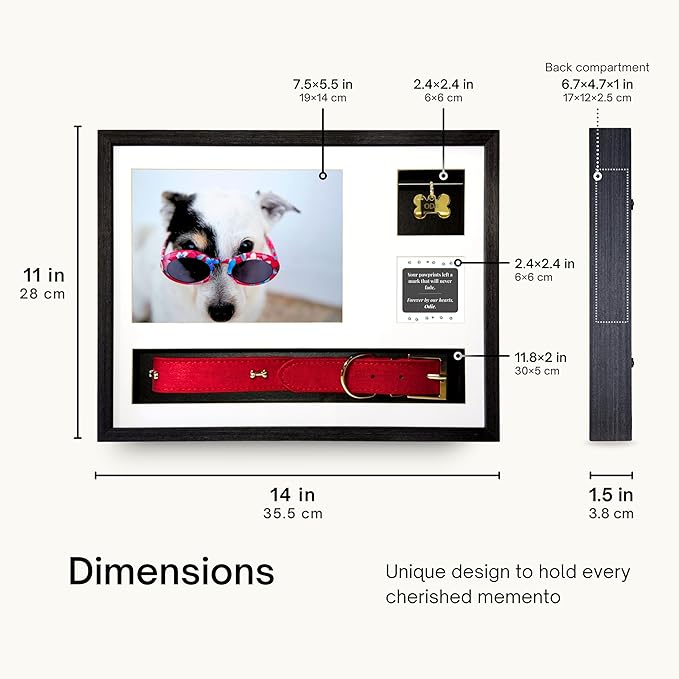 - Keep Every Memory: This large loss of dog sympathy gift holds more than just a photo, giving you space to include every special keepsake like their collar, tag and ashes