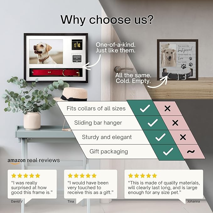 - Built to Last: Larger and sturdier than most, this high-quality pet memorial frame features a glass front and solid build to protect memories for years to come