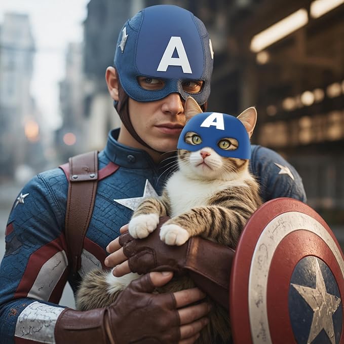 Cat Bat Mask Halloween Costumes Accessories for Cats, Cat Bat Cosplay Apparel (Medium, Blue Captain)