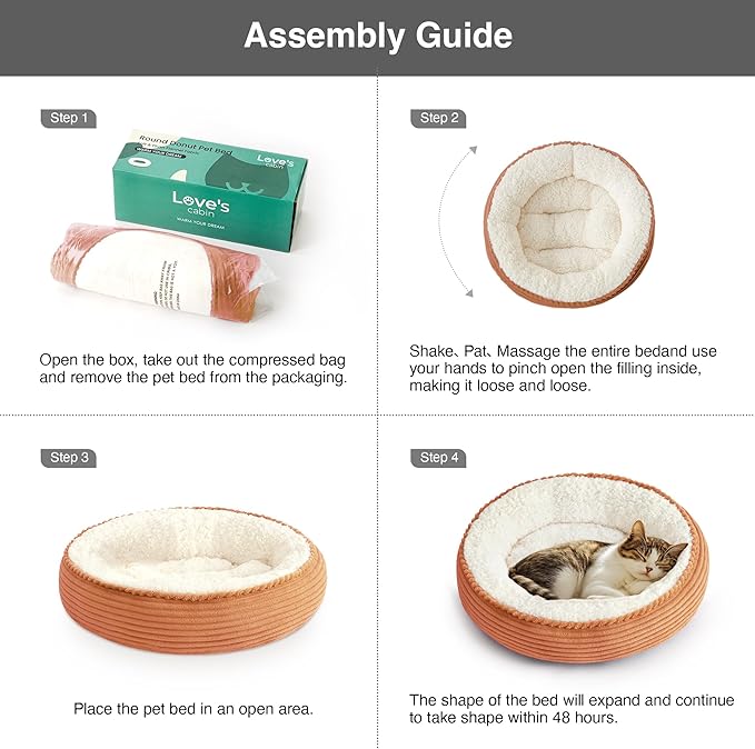 Love's cabin Round Donut Cat and Dog Cushion Bed, 20in Pet Bed for Cats or Small Dogs, Anti-Slip & Water-Resistant Bottom, Super Soft Durable Fabric Pet beds, Washable Luxury Cat Dog Bed Orange Stripe